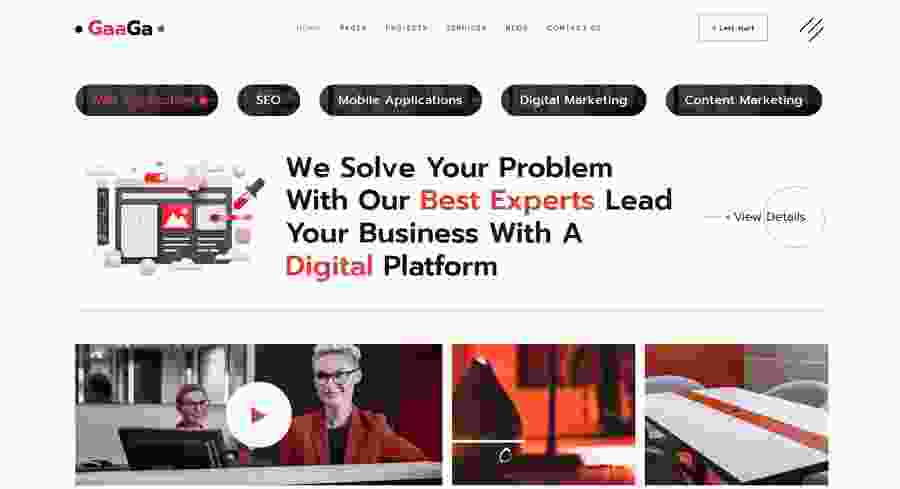 Gaaga – Creative Business Consultant WordPress Theme. This design is an excellent solution for startups, coworking space, cloud hosting, application, event, business, personal portfolio,